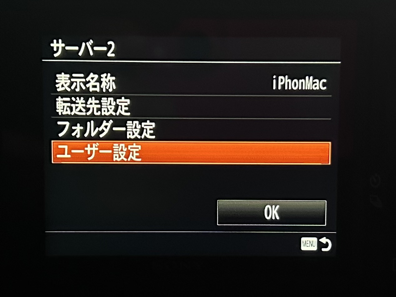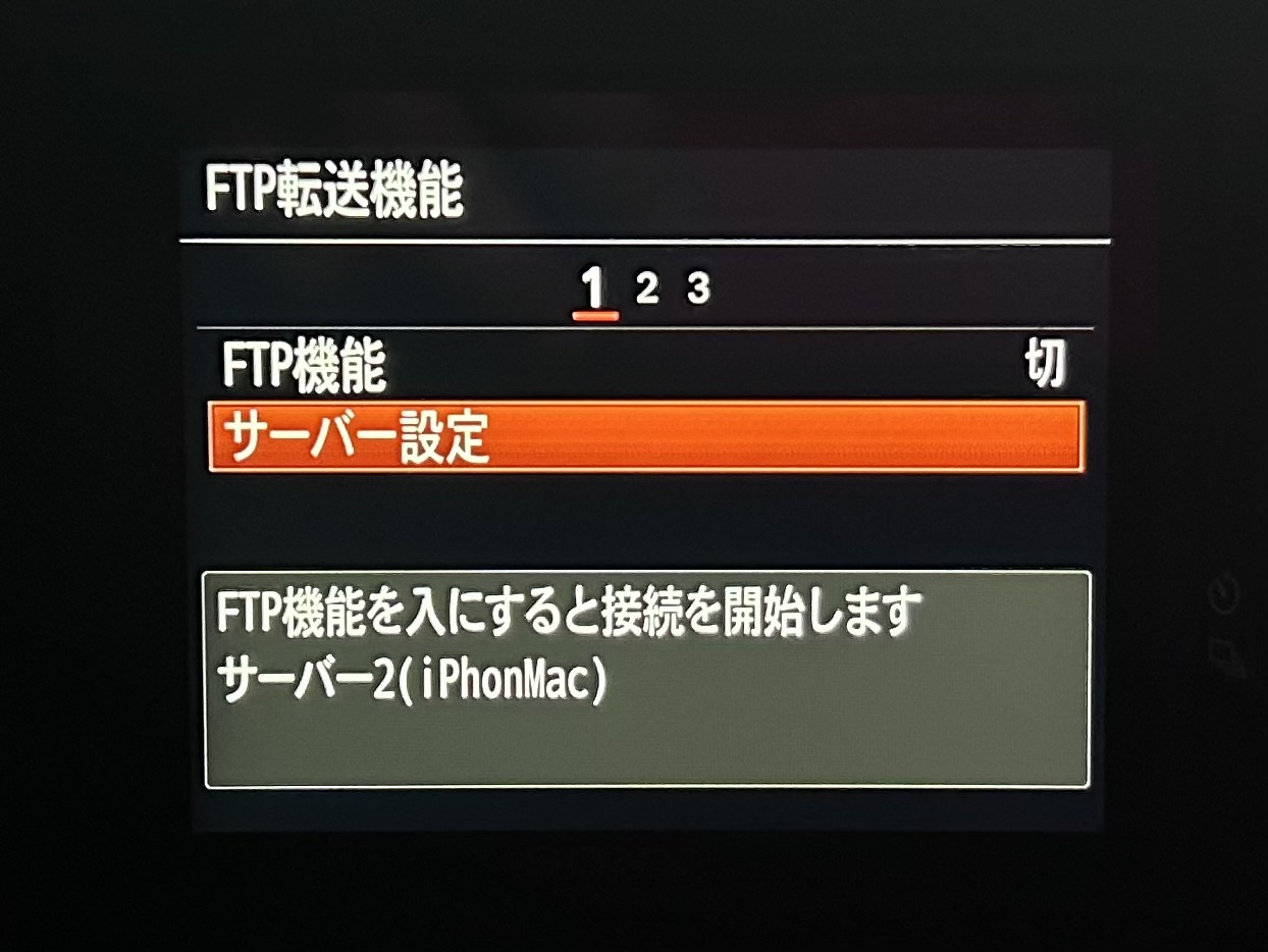 最後に「FTP転送機能」メニュー1の「FTP機能」を「入」にすると、iPhone経由でMacに接続されます。