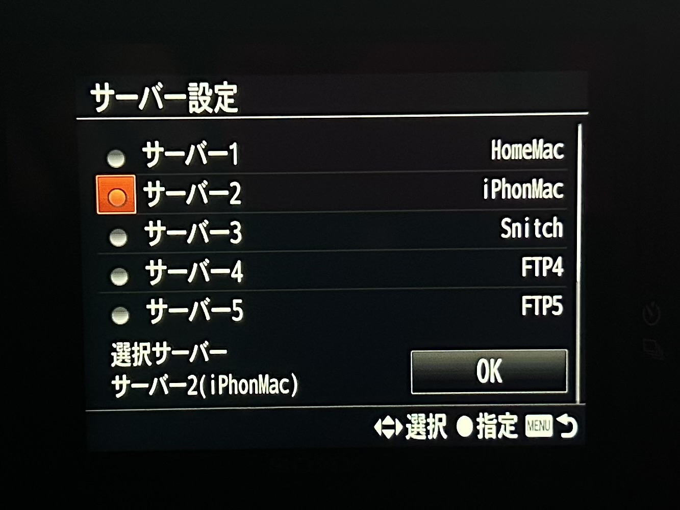 任意のサーバーを選択し、コントロールホイールの→キーを押して、中央ボタン押すと設定画面に入れます。