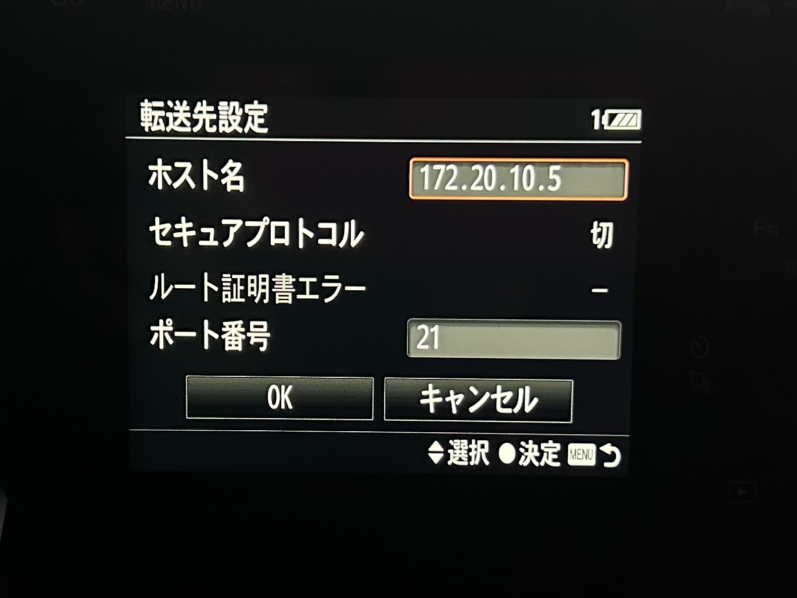 カメラ側のFTPクライアント設定