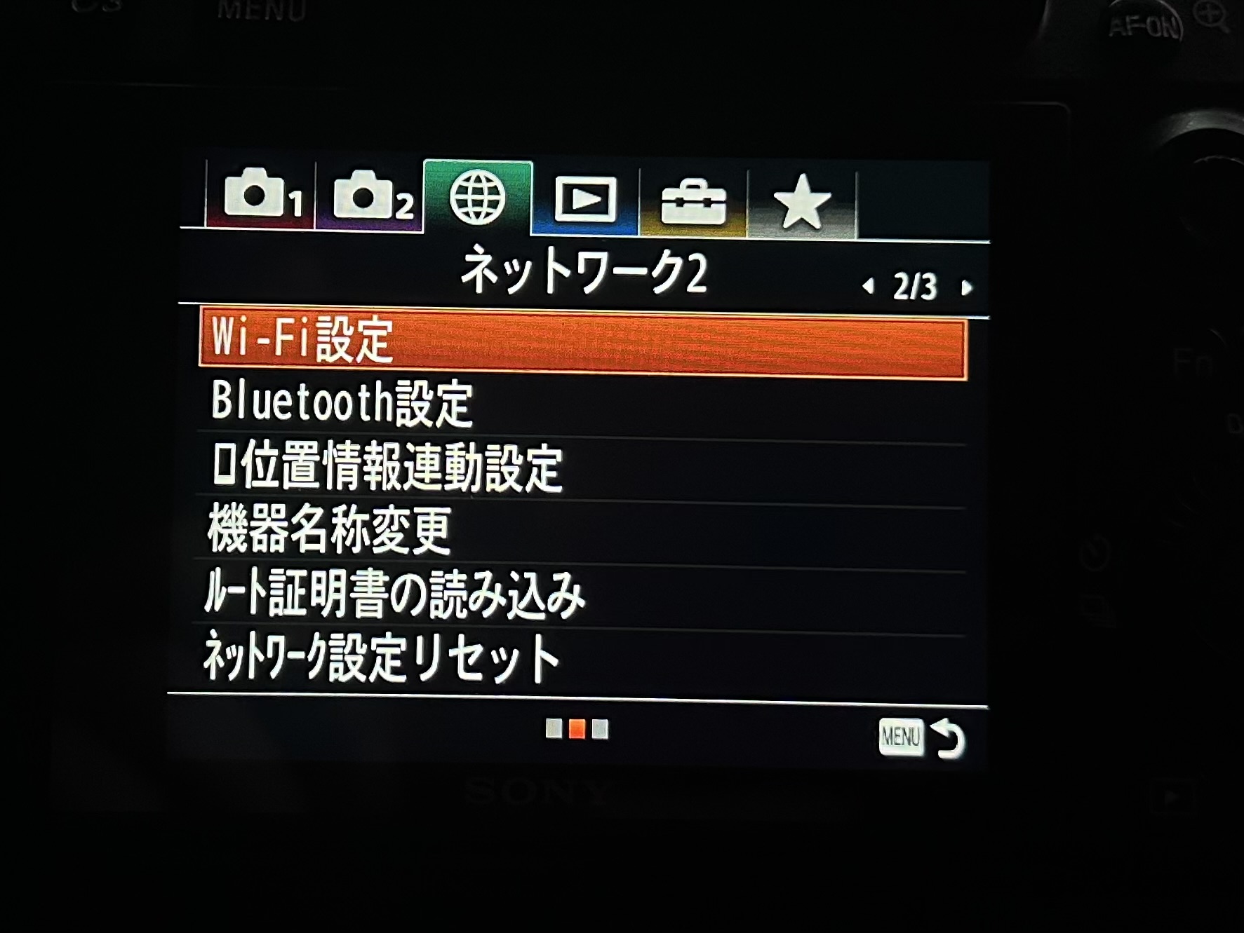 「ネットワーク2」から「Wi-Fi設定」を開きます。