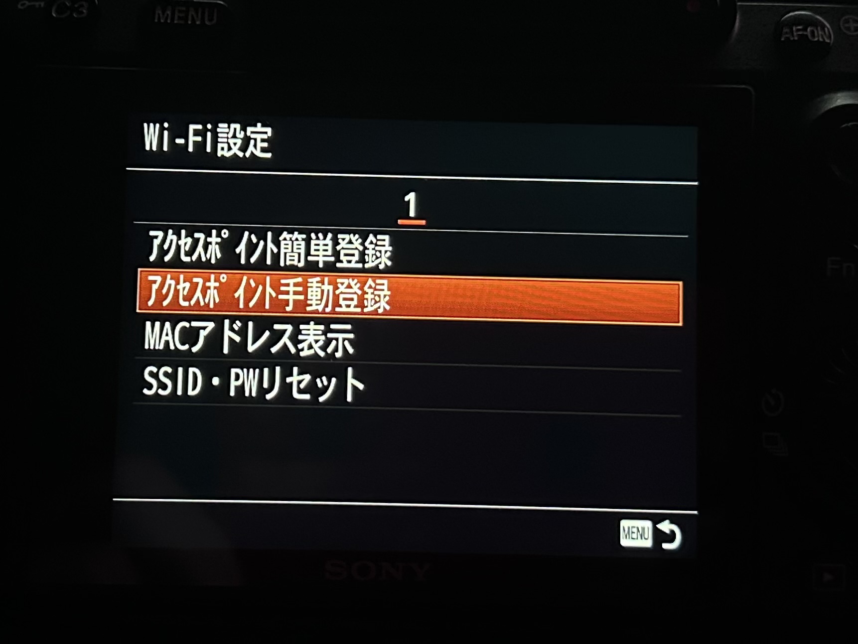 「アクセスポイント手動登録」を開きます。